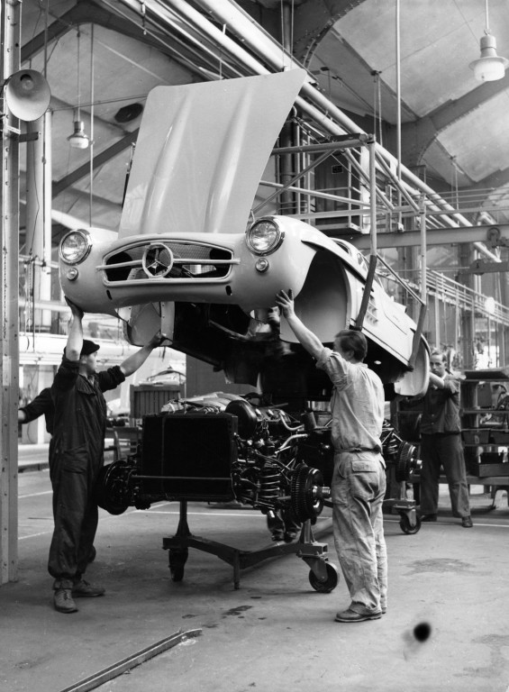 1954 Serieproduktie van de legendarische Mercedes-Benz 300 SL vleugeldeur