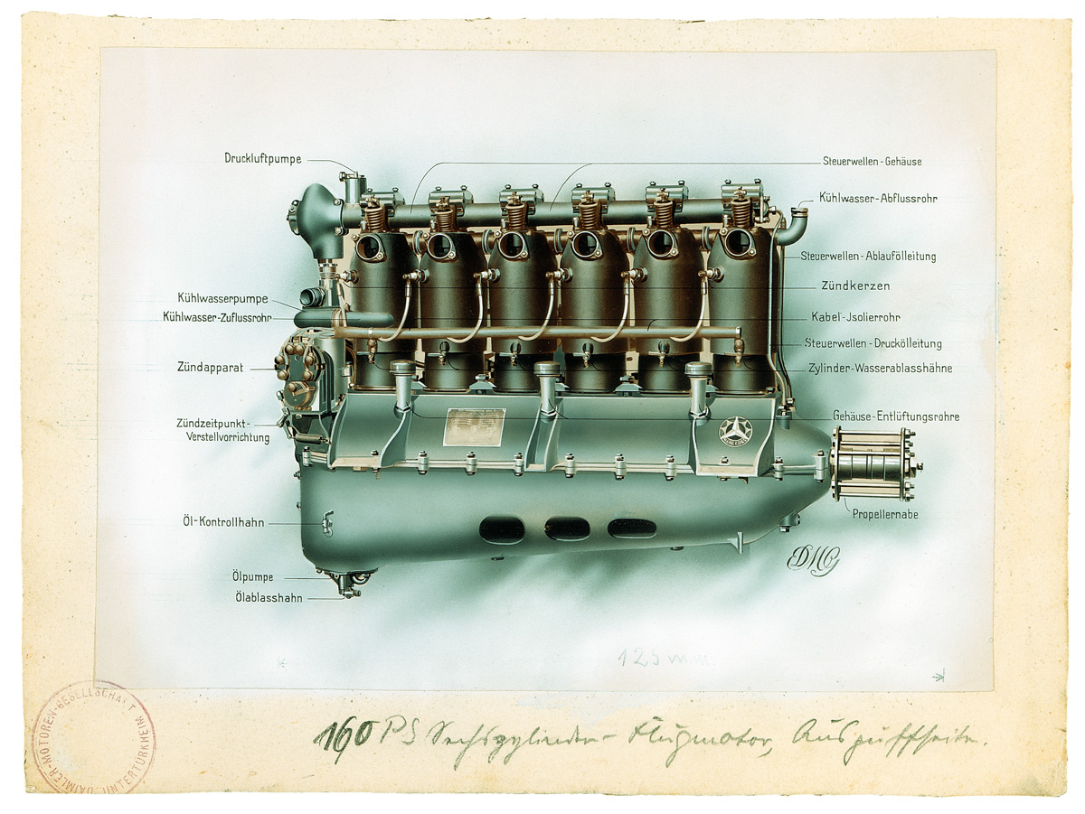 De DMG ontwikkelt daar zelfs de eerste Duitse 18-cilinder-vliegtuigmotor, de 500 Pk sterke W-Motor Mercedes D VI met een cilinderinhoud van 45,3 l . Maar concurrent Benz zit ook niet stil en in de herfst van 1915 koopt deze zich in in de Aviatik-Flugzeugwerken in Freiburg.